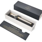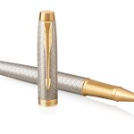 Pero Parker Royal I.M. Premium Warm Grey GT má tělo a víčko z eloxovaného hliníku se zdobnou rytinou a povrchem ošetřený pískováním. Doplňky jsou pokovené zlatem. celý popis