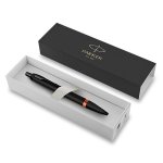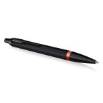 Kuličkové pero Parker Royal I.M. Vibrant Rings Flame Orange má matně černé tělo a víčko s výraznými barevnými prstenci oranžové barvy. Doplňky jsou potažené pomocí techniky PVD matně černou vrstvou. Stiskací mechanismus pro vysunutí velkokapacitní náplně. Standardně je v balení 1 náplň. Dodáváno v elegantní dárkové krabičce.