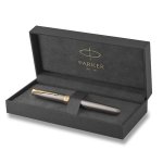 Keramické pero Parker Royal Sonnet Core Grey GT má šedě lakované tělo a víčko. Doplňky jsou pokovené zlatem. Víčko zabraňující vysychání náplně je nasazovací. Dodáváno v elegantní dárkové krabičce s 1 černou náplní vloženou mimo pero.