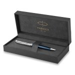 Kuličkové pero Parker Royal Sonnet Metal Blue CT má modře lakované tělo. Vrchní část je vyrobena z leštěné nerezové oceli a zdobena vzorem vytvořeným leptáním. Doplňky jsou pokovené nikl-palladiem. Otočný mechanismus pro vysunutí velkokapacitní náplně. Součástí balení černá náplň. Dodáváno v elegantní dárkové krabičce.