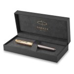 Plnicí pero Parker Sonnet Arrow GT má lesklé šedě lakované tělo, víčko se zdobnou rytinou a hrot ze zlata. celý popis