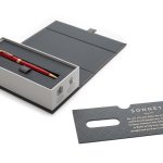 Kuličkové pero Parker Royal Sonnet Red GT má červeně lakované mosazné tělo. Doplňky jsou pokovené zlatem. Otočný mechanismus pro vysunutí velkokapacitní náplně. Dodáváno v elegantní dárkové krabičce.