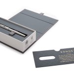 Keramické pero Parker Royal Sonnet Stainless Steel CT má tělo a víčko vyrobené z broušené nerezové ocele. Doplňky jsou pokovené palladiem. Víčko zabraňující vysychání náplně je nasazovací. Dodáváno v elegantní dárkové krabičce s 1 černou náplní vloženou mimo pero.