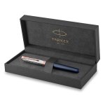 Keramické pero Parker Sonnet SE Mountain Fuji PGT vyniká svojí nadčasovou elegancí. Stylový design kombinovaný s jemnou řemeslnou prací. Tělo pera je vyrobené z mosazi s modře lakovanou úpravou. Víčko ze sterlingového stříbra (ryzost Ag 925/1000) je pokovené palladiem a vkusně doplněné růžovým zlatem. Zdobí ho rytiny s tematikou hory Fuji, svislé linky evokují turistické vycházkové hole, rytiny křížů znázorňují výchozí bod pro vysokohorskou turistiku Yoshida Trail, včetně uvedení nadmořské výšky hory Fuji 3 776 m. Úchopovou část z broušené nerezové oceli zdobí kroužky z jemného růžového zlata. Víčko je nasazovací. Součástí balení jedna náplň. Dodáváno v elegantní dárkové kazetě.