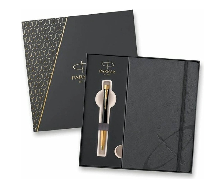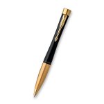Sada kuličkového pera Parker Urban Muted Black GT, zápisníku a voucheru na kurz Akademie psaní. Kuličkové pero má mosazné tělo černé barvy s lakovanou povrchovou úpravou. Úchop je kovový. Doplňky jsou pokovené zlatem. Otočný mechanismus pro vysunutí náplně. Součástí balení jedna modrá náplň.