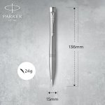 Kuličkové pero Parker Urban Twist Metro Metallic CT má broušené mosazné tělo s pochromovanou povrchovou úpravou. Úchop je kovový. Doplňky jsou také pokovené chromem. Otočný mechanismus pro vysunutí náplně. Součástí balení jedna modrá náplň. Dodáváno v elegantní dárkové krabičce.