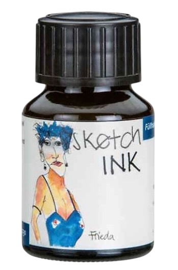 Prvotřídní inkoust Sketchink od Rohrer & Klingner v tmavě modré barvě. Je velmi všestranný - lze jej použít nejen v plnicích perech, ale také se štětci nebo kaligrafickými brky. Je vyjímečně voděodolný a světlostálý. Pro optimální tok inkoustu jsou použity nano pigmenty. Díky tomu Sketchink ideální pro kreslení jemných obrysů. Při míchání s vodou lze vytvořit brilantní odstíny, což z něj dělá ideálního společníka pro Urban Sketchers. Ocení ho také designéři, grafici a architekti. Dodáváno ve skleněné lahvičce. Objem 50 ml.