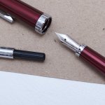Plnicí pero japonské značky Sailor má tělo vyrobené z akrylátového skla vínové barvy. celý popis