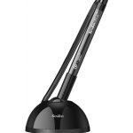 Pultové černé kuličkové pero Scrikss připevněné k základně a s kloubovým mechanismem umožňujícím otáčení. celý popis