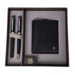 Dárková sada plnicího a kuličkového pera Scrikss Honour Black CT a koženého vizitkáře. Plnicí pero je dodáváno s hrotem M a součástí balení je konvertor a 2 bombičky. Kuličkové pero má otočný mechanismus pro vysunutí velkokapacitní modré náplně. Dodáváno v luxusní dárkové krabičce.