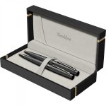 Dárková sada kuličkového pera a mechanické tužky Honour v matně černé lakové úpravě. Těla per jsou zdobena liniemi, které dotváří moderní vzhled per. Dodáváno v dárkové krabičce.