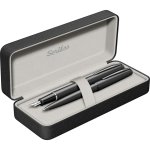 Dárková sada matného černého plnicího a kuličkového pera Scrikss Metropolis v krásné dárkové krabičce. celý popis