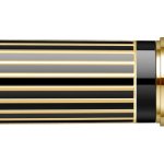 Keramické pero Scrikss Noble s černě lakovaným víčkem a černým tělem zdobeným pozlacenými liniemi. celý popis