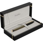 Elegantní keramické pero Scrikss Noble s mosazným nasazovacím víčkem lakovaným vícevrstvým černým lakem. Tělo rolleru je černě lakované a zdobené pozlacenými liniemi. Doplňky jsou také pozlacené. Víčko je nasazovací. Dodáváno v dárkové krabičce.