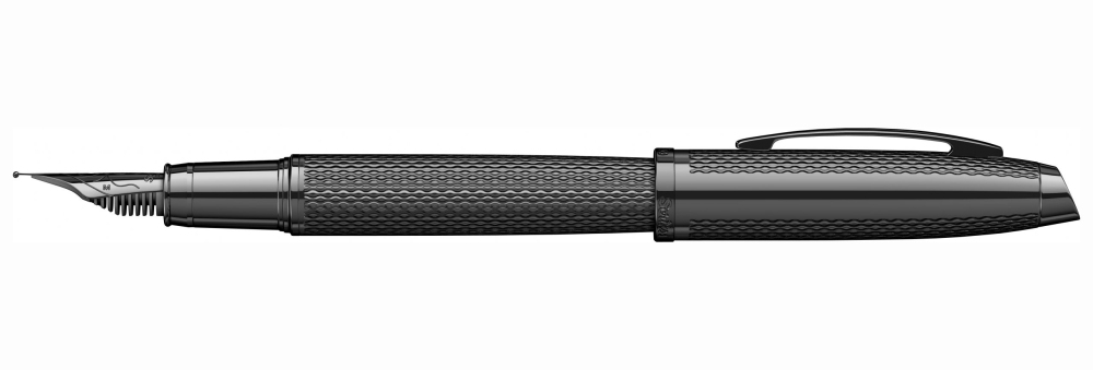 Zaujme matně černou kovovou konstrukcí s unikátním vlnkovým vzorem, která dodává peru charakter a zároveň zajišťuje pevný a pohodlný úchop. Leskle černé kovové doplňky a pružný klip z nerezové oceli podtrhují jeho luxusní vzhled.