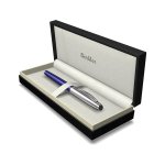 Plnicí pero Scrikss s tělem v modré lakové úpravě a s pochromovaným nasazovacím víčkem jemně zdobeným liniemi. Klip je také pochromovaný. Elegantní zkosený vršek víčka. Hrot s iridiovou špičkou je vyrobený z nerezové ocele a je v nabídce pouze v šířce M - střední. Pero je vybavené systémem na bombičky i na plnění konvertorem. Součástí balení je konvertor a 2 modré bombičky. Dodáváno v dárkové krabičce.