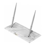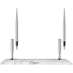 Elegantní a moderní stolní set kovových plnicích per ve stříbrné barvě se základnou z bílého mramoru. celý popis