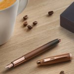 Klasické kovové plnicí pero Sheaffer v odstínech kávově hnědé barvy s matnou povrchovou úpravou. Gradientový přechod barev dodává peru moderní, luxusní vzhled a činí ho nejen krásným, ale i praktickým na každodenní používání. Pružný klip s typickou bílou tečkou a úzký kroužek s logem značky Sheaffer jsou pokovené technikou PVD v hnědé barvě. Hrot velikosti F (slabý) je vyrobený z nerezové ocele a je také pokovený technikou PVD v hnědé barvě. Víčko je nasazovací. Součástí balení jedna bombička a konvertor pro plnění pera inkoustem. Pero je dodáváno v dárkové krabičce.