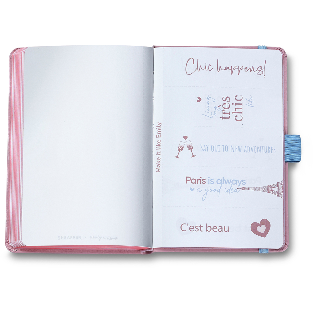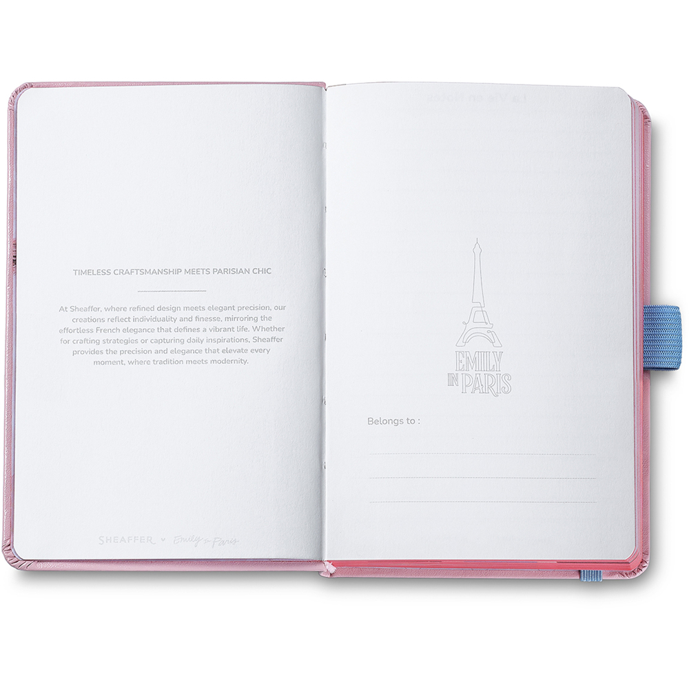 Linkovaný zápisník Sheaffer Emily in Paris A5 s Eiffelovkou, růžovým okrajem a samolepkami – stylový společník pro vaše nápady. celý popis