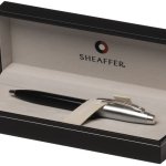 Klasické kovové plnicí pero Sheaffer v elegantní černo-stříbrné variaci. Broušená chromovaná vrchní část pera a černě lakované tělo pera. Pružný klip s typickou bílou tečkou, úzký kroužek s logem značky Sheaffer. Hrot z nerez oceli. Plnění na inkoustové bombičky nebo konvertor. Dodáváno v dárkové krabičce.