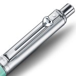 Povrch spodní části pera je upraven matným zeleným lakem s jemným leskem. Na klipu najdete decentní emblém ve tvaru srdce, který odkazuje na charakteristický styl seriálové Emily. Středový kroužek zdobí logo Emily in Paris. Díky spolehlivému stiskacímu mechanismu a celokovovému mosaznému tělu vydrží i náročnější pracovní tempo. Bonus? Pěkná dárková krabička s květinovým vzorem.