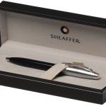 Kovové kuličkové pero Sheaffer VFM Matte Black s matně černou lakovanou povrchovou úpravou v kombinaci s doplňky pokovenými niklem je ozdobeno úzkým kroužkem a pružným klipem s logem značky Sheaffer. Stiskací mechanismus pro vysunutí náplně. Dodáváno v dárkové krabičce.