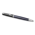 Kuličkové pero Hémisphere Black & Blue CT má lakované mosazné tělo v modré barvě a horní část v barvě černé. V kombinaci s doplňky pokovenými palladiem. Otočný mechanismus pro vysunutí velkokapacitní náplně. Součástí balení jedna standardní náplň. Dodáváno v dárkové krabičce.