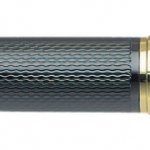 Kvalitní kuličkové pero s tmavě šedou lakovou úpravou a s jemnými rytinami ve tvaru vlnky. Klip a doplňky jsou pozlacené. Vedle klipu je prostor pro gravírování. Otočný mechanismus pro vysunutí velkokapacitní náplně (standardní evropský typ). Dodáváno v dárkové krabičce.